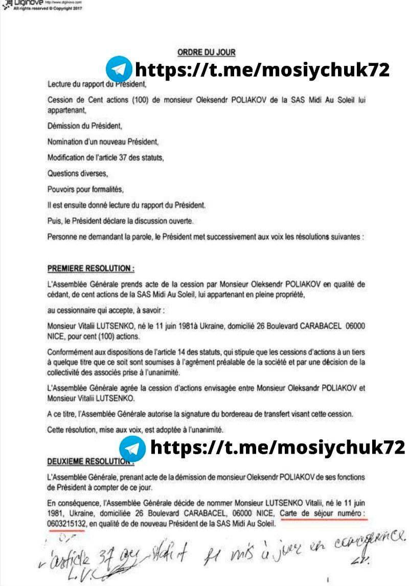 За даними французьких реєстрів, Луценко є резидентом Франції та співвласником фірми, на яку оформлено ресторан у Ніцці.