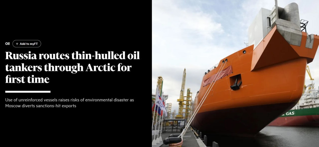 FT побоюється, що ходіння непристосованих для Арктики танкерів може спричинити розлив нафти. При цьому пише, що до цього рішення Росію підштовхнули західні санкції.