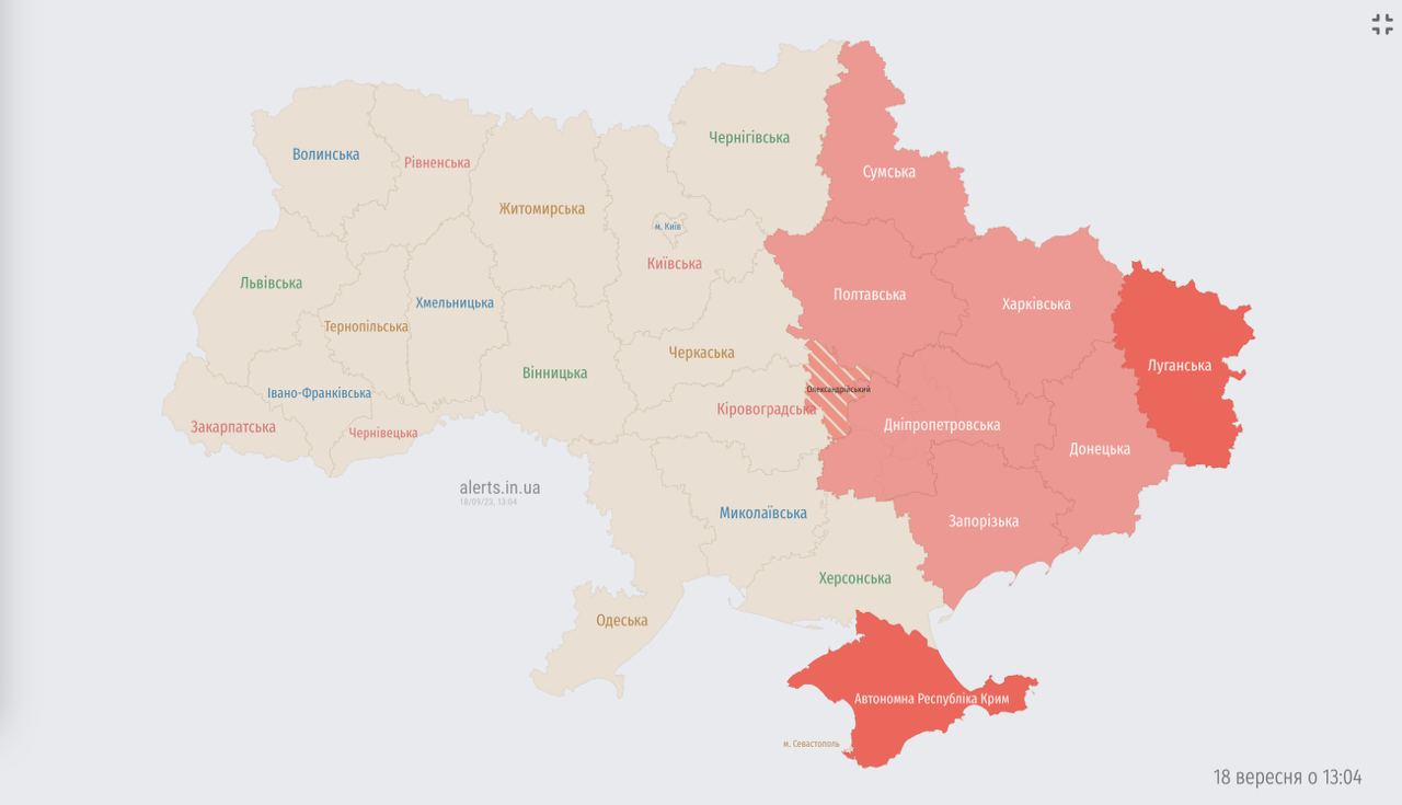 18:33 У східних областях оголошено тривогу у зв'язку з балістичною загрозою.
