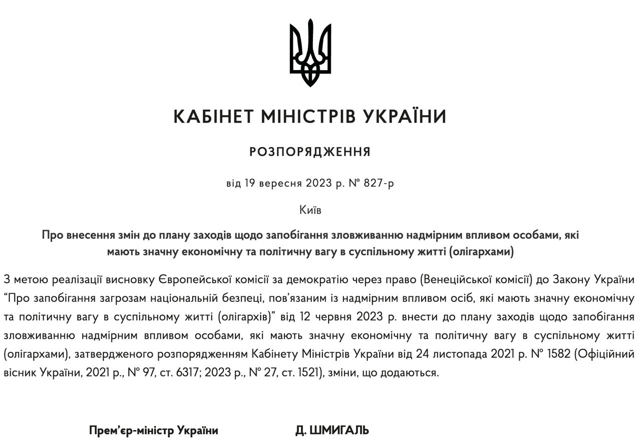 Кабінет Міністрів України відклав створення реєстру олігархів до закінчення війни, як і рекомендувала Венеціанська комісія.