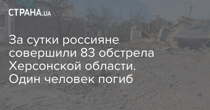 За добу росіяни здійснили 83 обстріли Херсонської області. Одна людина загинула
