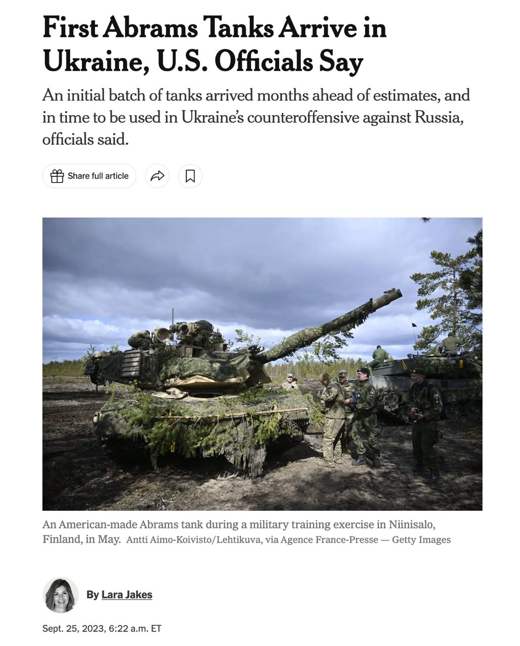 Про те, що першу партію американських танків Abrams на вихідних було доставлено в Україну, раніше написали в New York Times з посиланням на джерела.