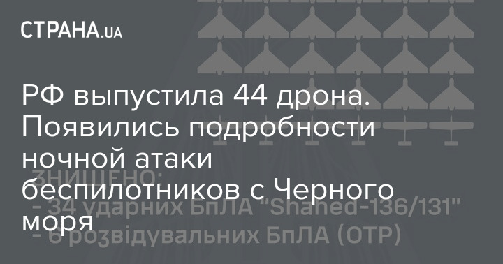 Під час нічної атаки безпілотників РФ випустила 44 ударні дрони.