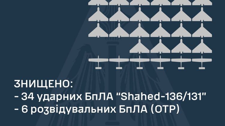 Було знищено 34 "Шахеди" та 6 розвідувальних БПЛА