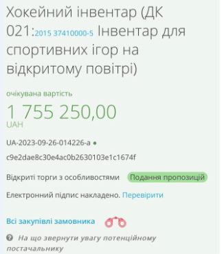 А в Херсоні, що знаходиться під постійними обстрілами, комунальне підприємство облради "Обласний центр хокею" хоче закупити 295 хокейних ключок на 1,75 млн грн.