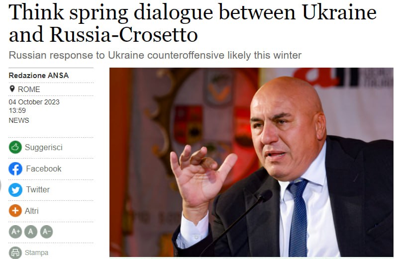 Буквально у вересні Крозетто висловлював надію на те, що війна в Україні завершиться протягом семи-восьми місяців, тобто до кінця весни.