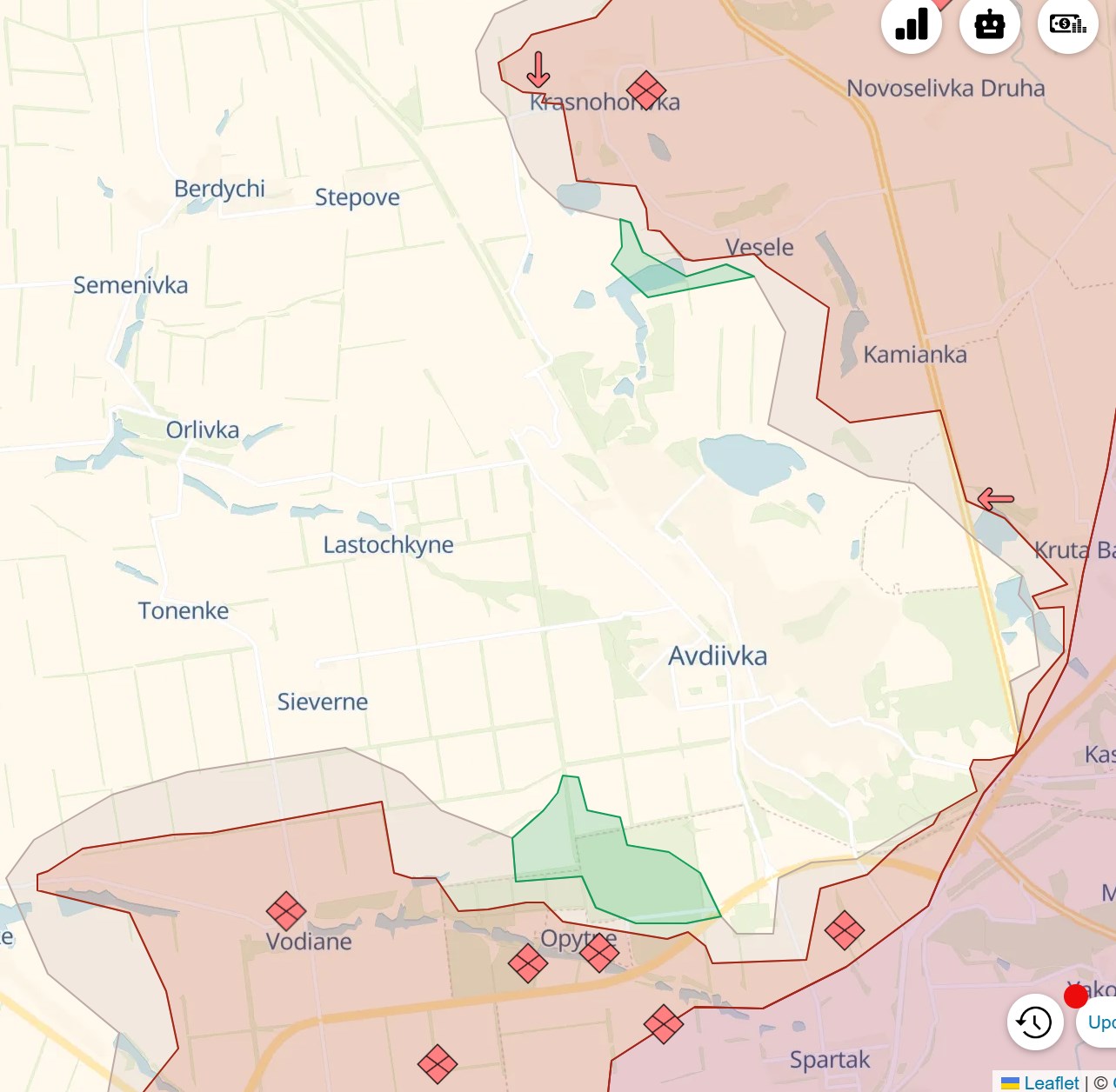 Одночасно російські військові паблики заявили про початок наземного наступу росіян і про просування на північний захід від Авдіївки - з метою перерізати одну з доріг до міста.