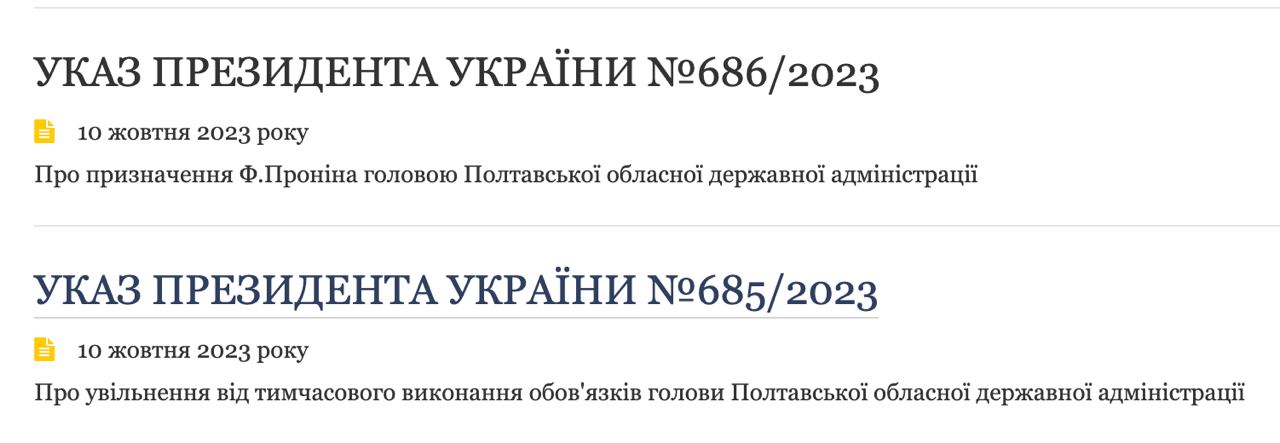 Одним указом, під номером 685, Дмитра Луніна звільнено з посади тимчасового виконувача обов'язків голови Полтавської обласної військової адміністрації.