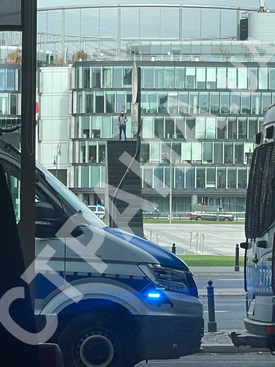 Площа Пілсудського оточили поліцейські. Із чоловіком намагалися вести переговори. Виразних вимог він не висував.