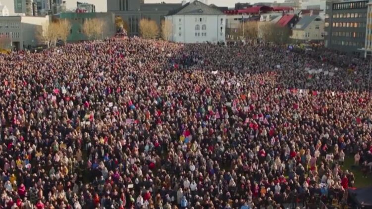 В Ісландії десятки тисяч жінок оголосили страйк проти нерівності за статевою ознакою. Відео