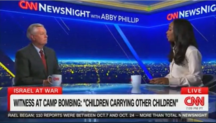 Сенатор з'явився на CNN у вівторок увечері після авіаударів ЦАХАЛу по табору біженців у секторі Газа, внаслідок яких загинули десятки людей.