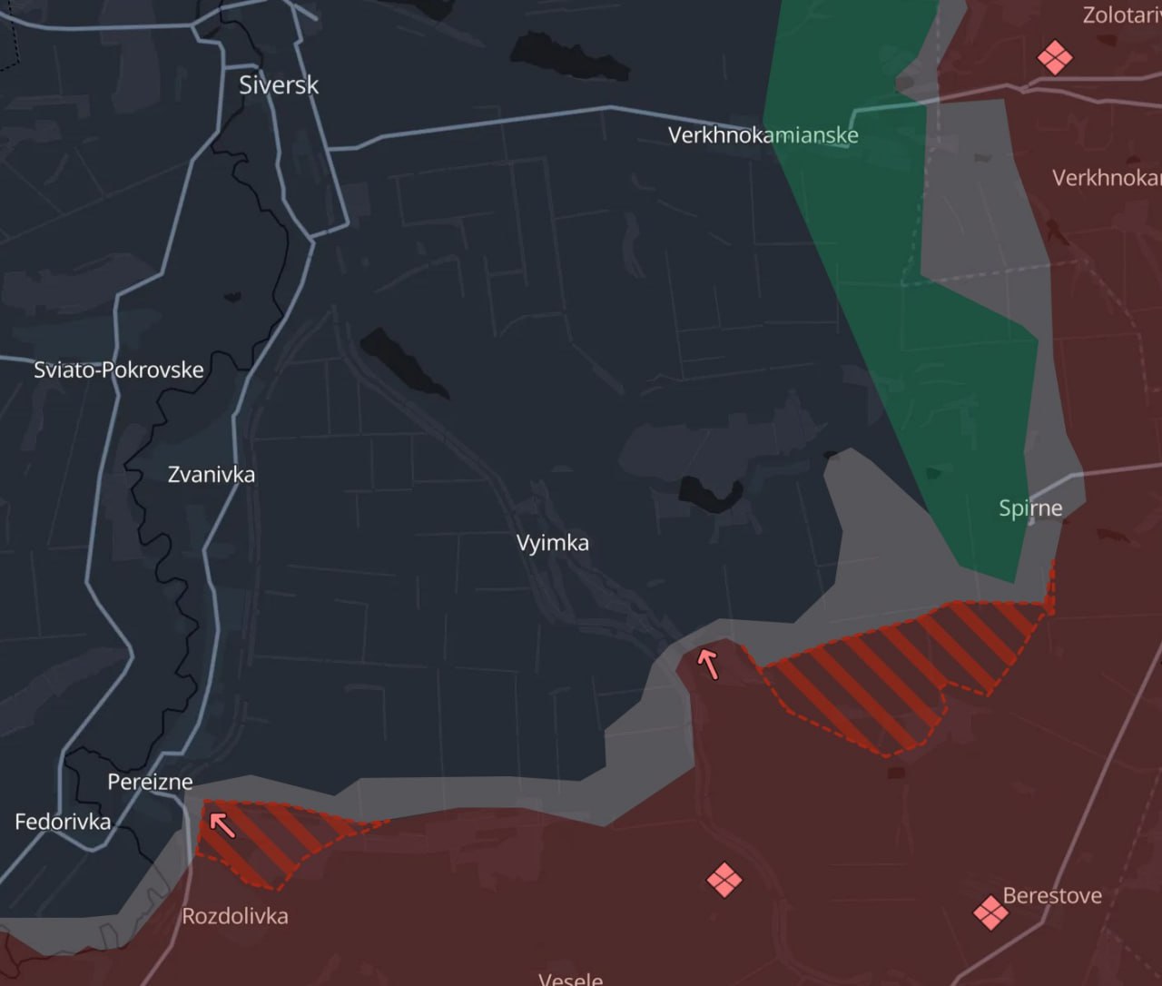 4. Під Сіверськом війська РФ пройшли на північ від Роздолівки у бік дороги, що веде до Сіверська з боку Бахмута.