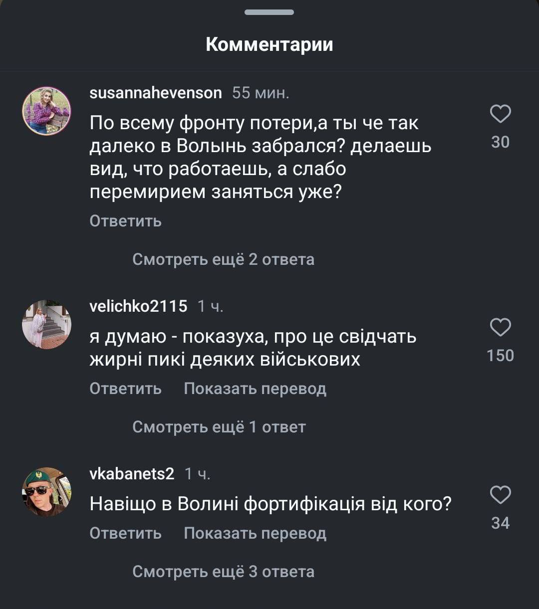 Під постом Володимира Зеленського про його поїздку на Волинь, де він оглянув будівництво фортифікацій та провів нараду щодо безпеки північних регіонів України, з'явилося багато коментарів із критикою.