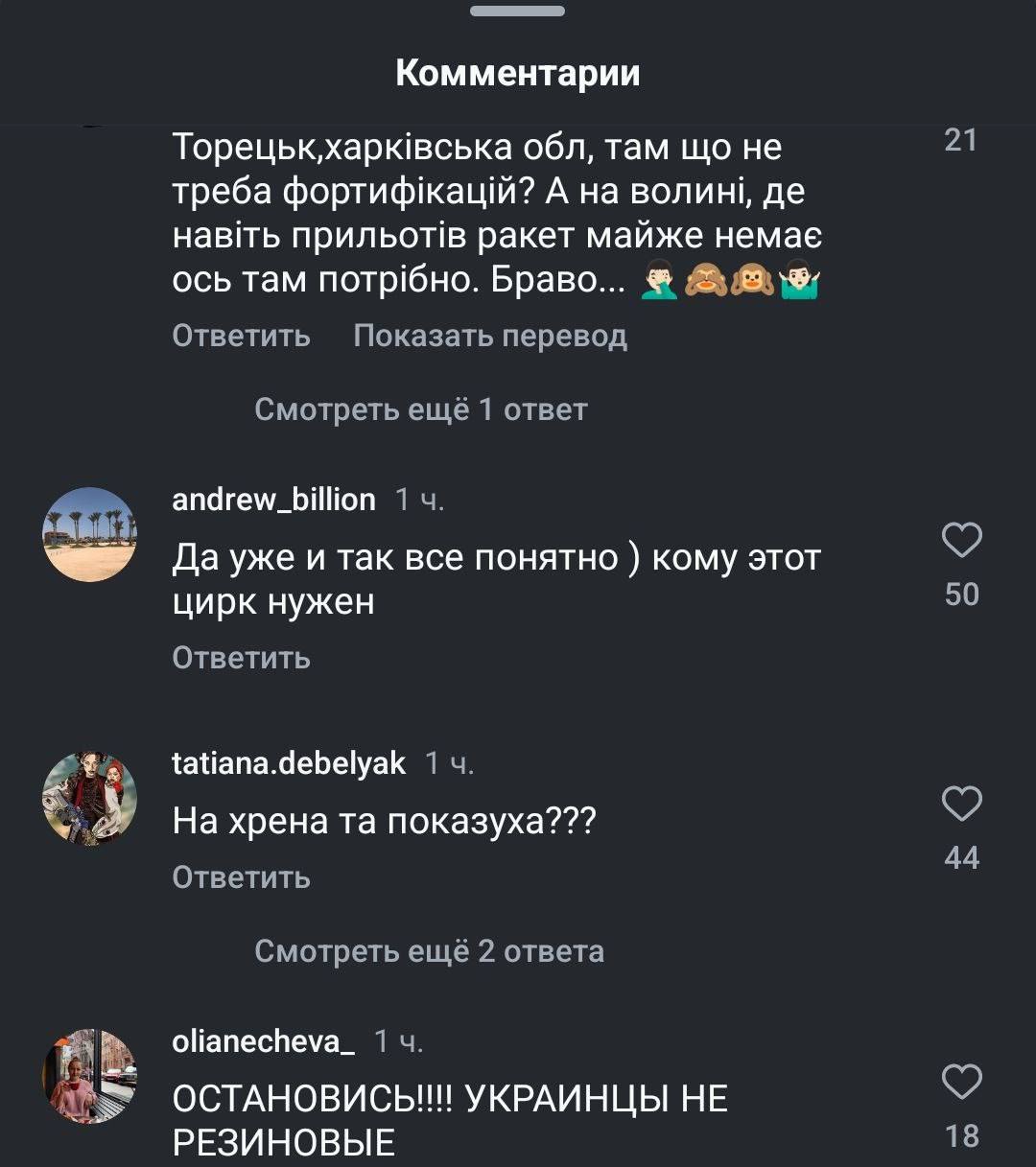 Користувачі залишили негативні відгуки в Інстаграм-акаунті президента.