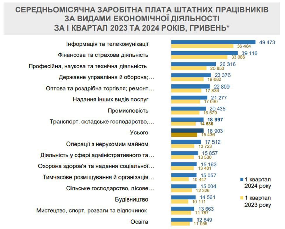 Повідомляється, що найвищі зарплати в ІТ (49473 грн).