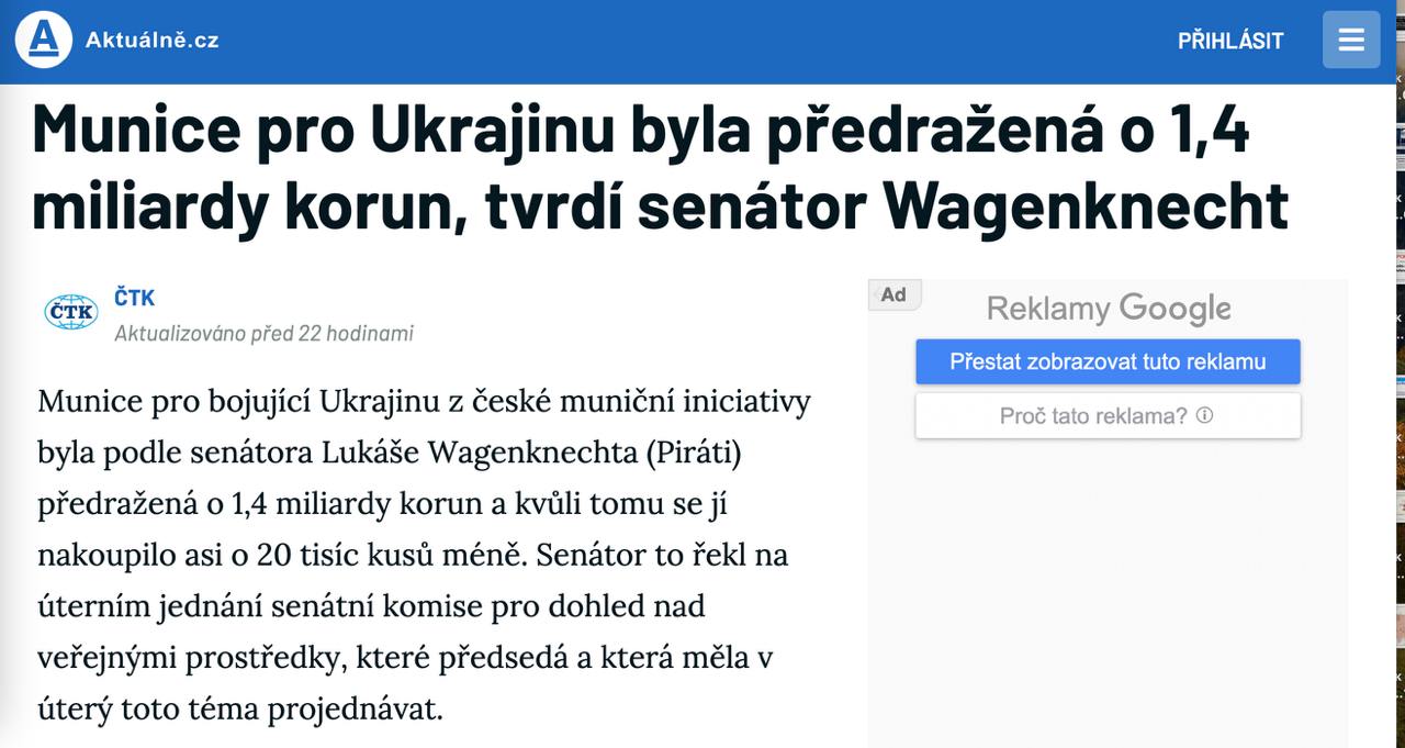 При закупівлі Чехією боєприпасів для України їхня ціна була завищена на 1,4 мільярда крон (близько 60 мільйонів доларів), через що ЗСУ недоотримали близько 20 тисяч снарядів.