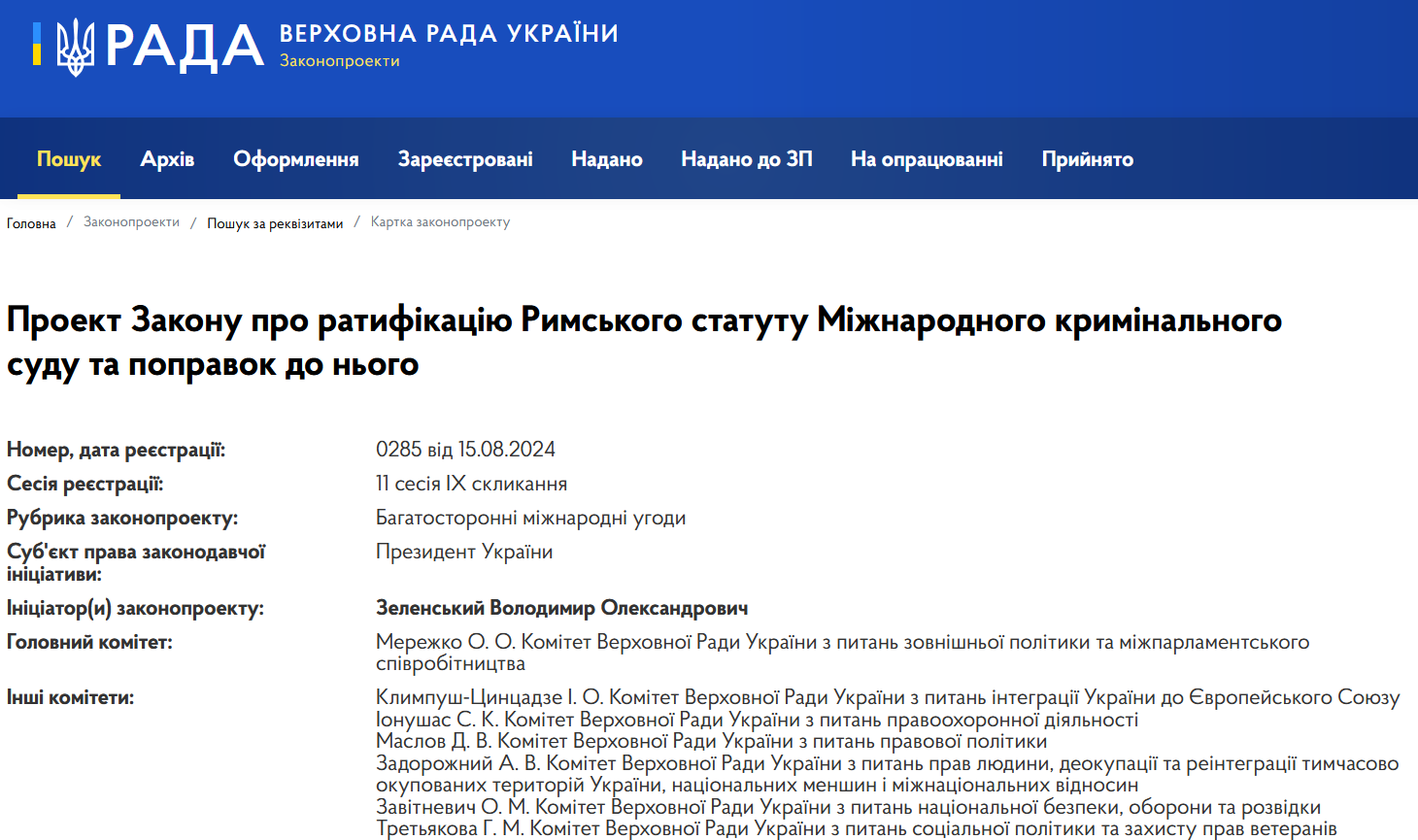 Як ми писали, про намір приєднатися до Римського статуту Міжнародного кримінального суду влада України заявляла ще у 2020 році.