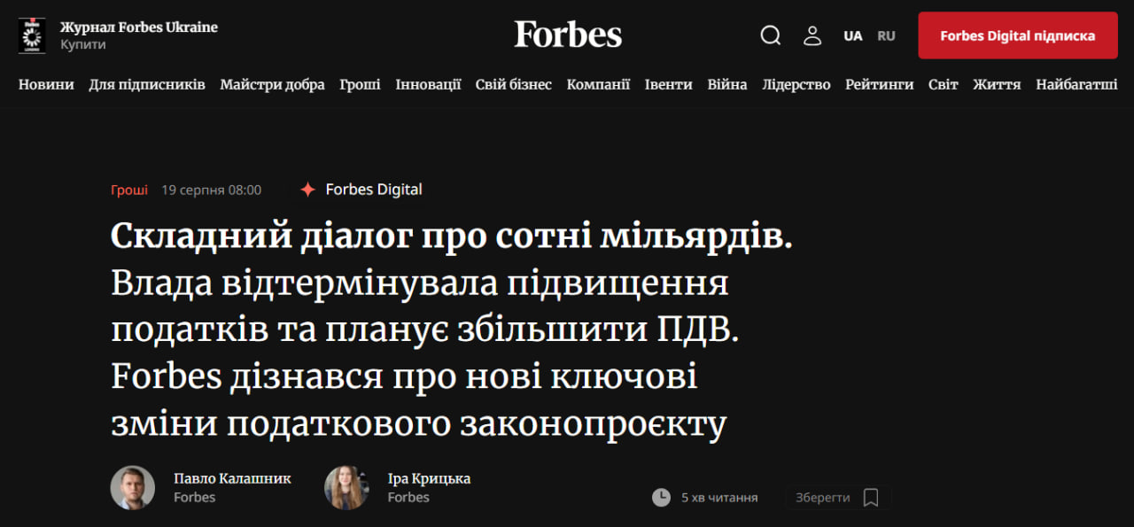 Про це пише Forbes з посиланням на джерела в уряді та Верховній Раді.