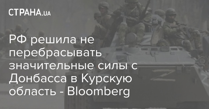 РФ вирішила не перекидати значні сили з Донбасу до Курської області - Bloomberg