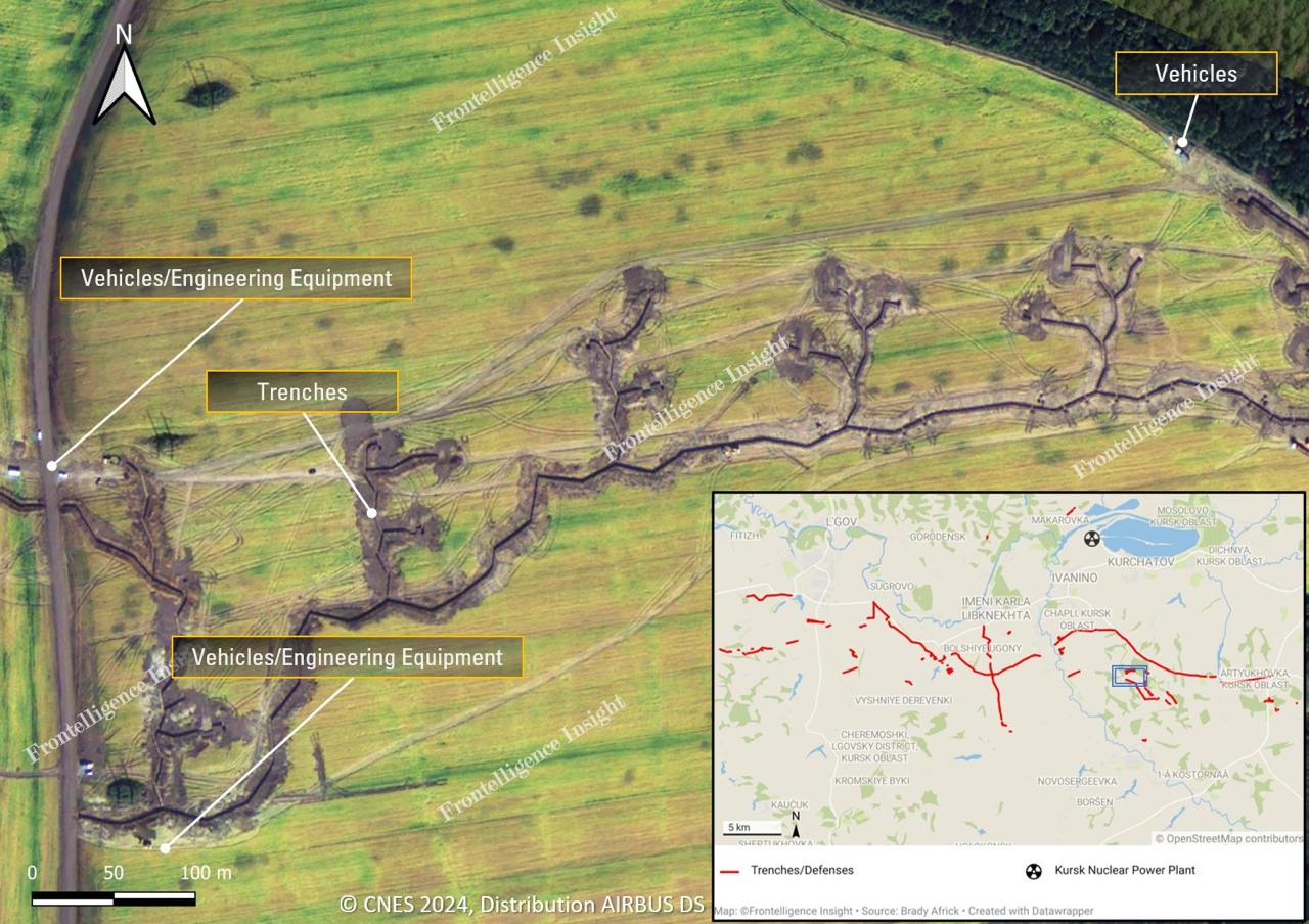 Судячи з карти, протяжна лінія оборони будується як під Курчатовим, а й значно західніше - доходячи до міста Льгова (до лінії фронту звідти близько 30 кілометрів на південь).