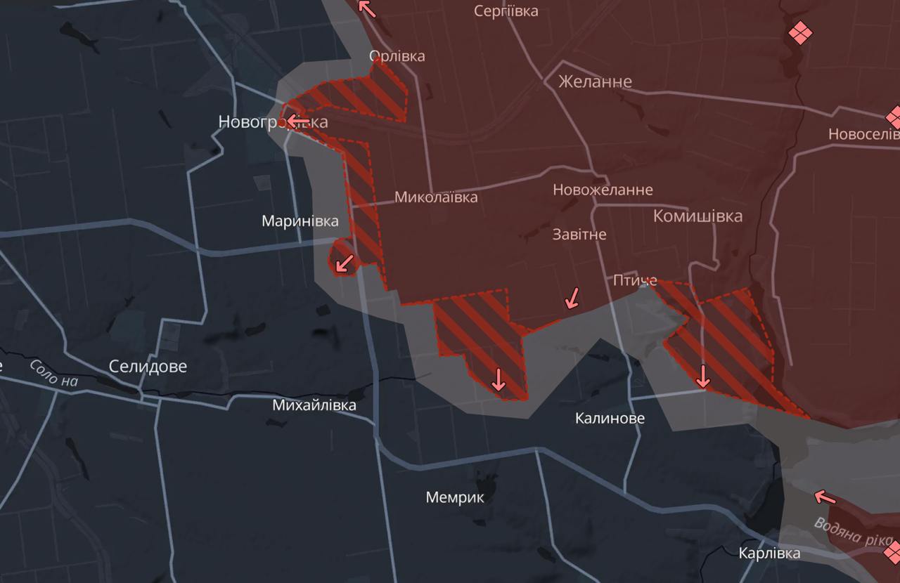 Також вони наблизилися до Селидова з боку Маринівки та Миколаївки. До східної межі міста від лінії фронту залишилося менше трьох кілометрів.