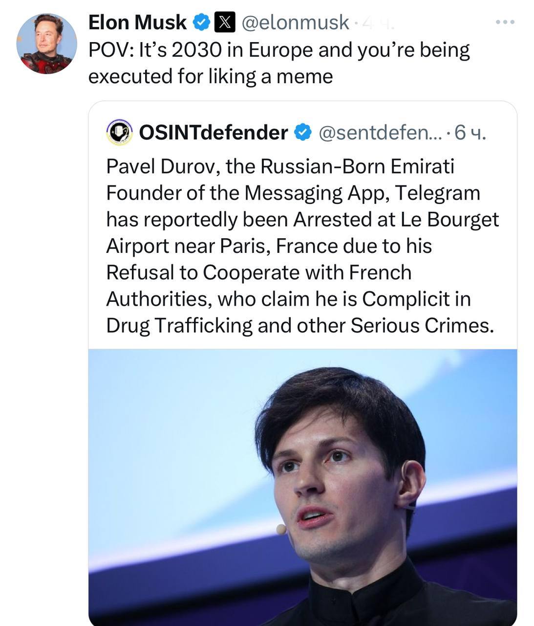 Нагадаємо, Дурова затримали вчора в аеропорту Ле Бурже у Франції. За даними ЗМІ, причина затримання засновника Telegram у Парижі - звинувачення месенджера у сприянні торгівлі наркотиками та злочинам, пов'язаним із дітьми.