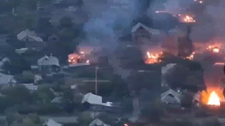 У Торецьку під масований удар потрапила приватна житлова забудова – щонайменше сім домогосподарств охоплено полум'ям. В окремих будинках помітні руйнування.