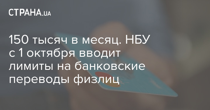 150 тисяч на місяць. НБУ з 1 жовтня вводить ліміти на банківські перекази фізосіб