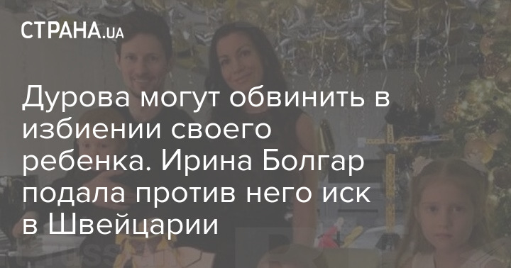 Як пише журнал Forbes, Ірина Болгар, яка називає себе матір'ю трьох дітей заарештованого у Франції Павла Дурова, подала проти нього позов до Швейцарії. Вона стверджує, що Дуров застосував фізичне насильство до одного з їхніх дітей.