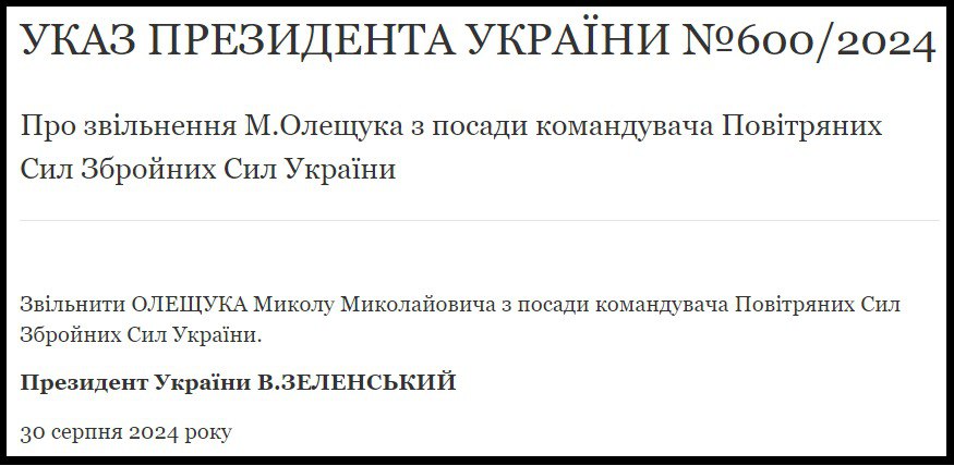 Нагадаємо, сьогодні Зеленський звільнив командувача Повітряних сил Олещука.