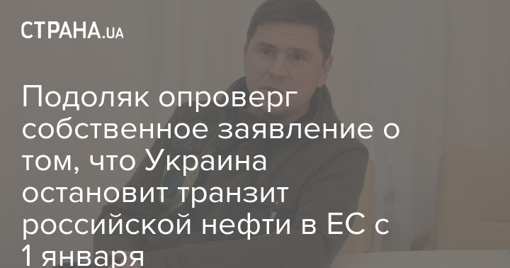 Радник глави Офісу президента Михайло Подоляк спростував свою власну заяву про те, що Україна припинить транзит російської нафти до ЄС з 1 січня 2025 року.