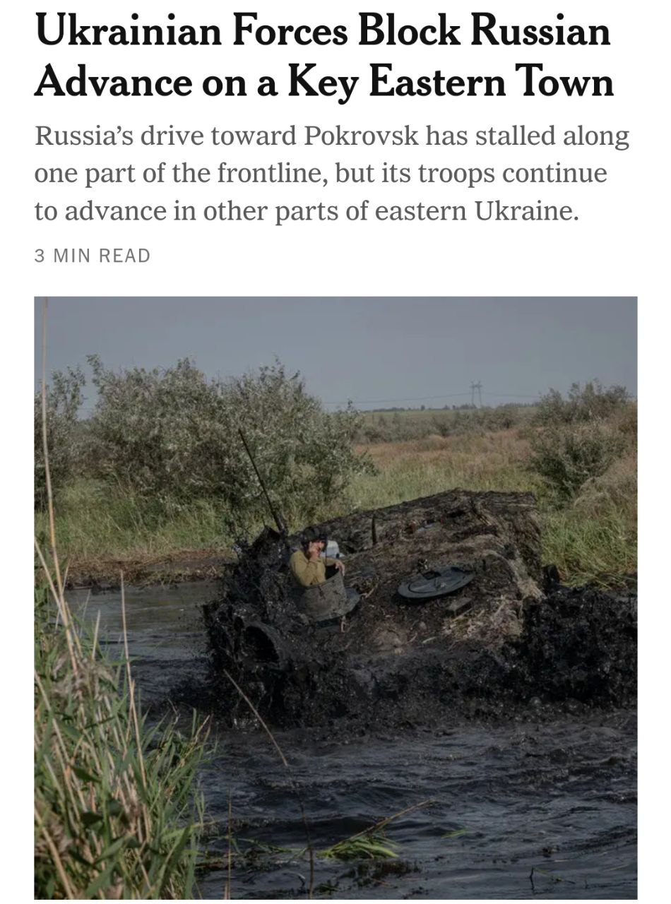 Незважаючи на зупинку російського наступу під Покровськом, війська РФ просуваються на південь - New York Times