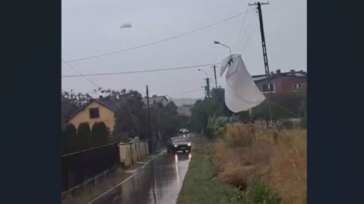У мережі з'явилося відео, як у Польщі десантники НАТО під час навчань приземлилися на село замість запланованого пустиря. Один із них повис на дротах.