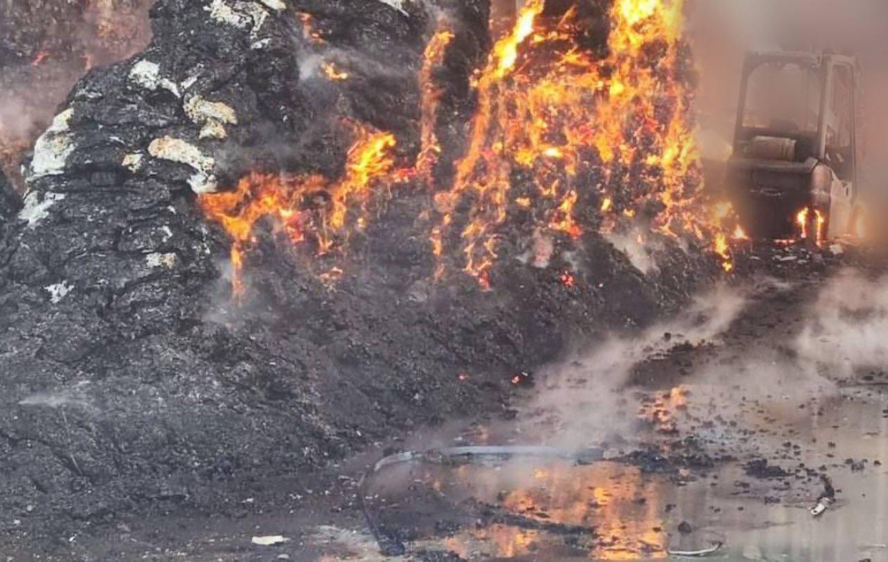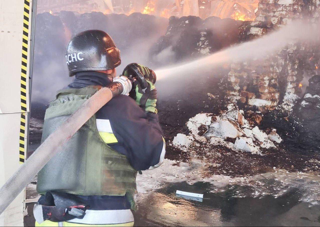 14:37 Фото масштабної пожежі на підприємстві у Кам'янському районі Дніпропетровської області після прильоту.