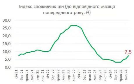 Інфляція в Україні прискорилась до 7,5%. Інфляція на споживчому ринку у серпні 2024 року порівняно з липнем становила 0,6%, з початку року – 4,9%.