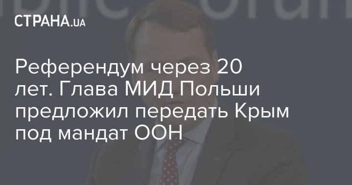 Глава Міністерства закордонних справ Польщі Радослав Сікорський запропонував передати Крим під мандат ООН для проведення через 20 років референдуму щодо його статусу.