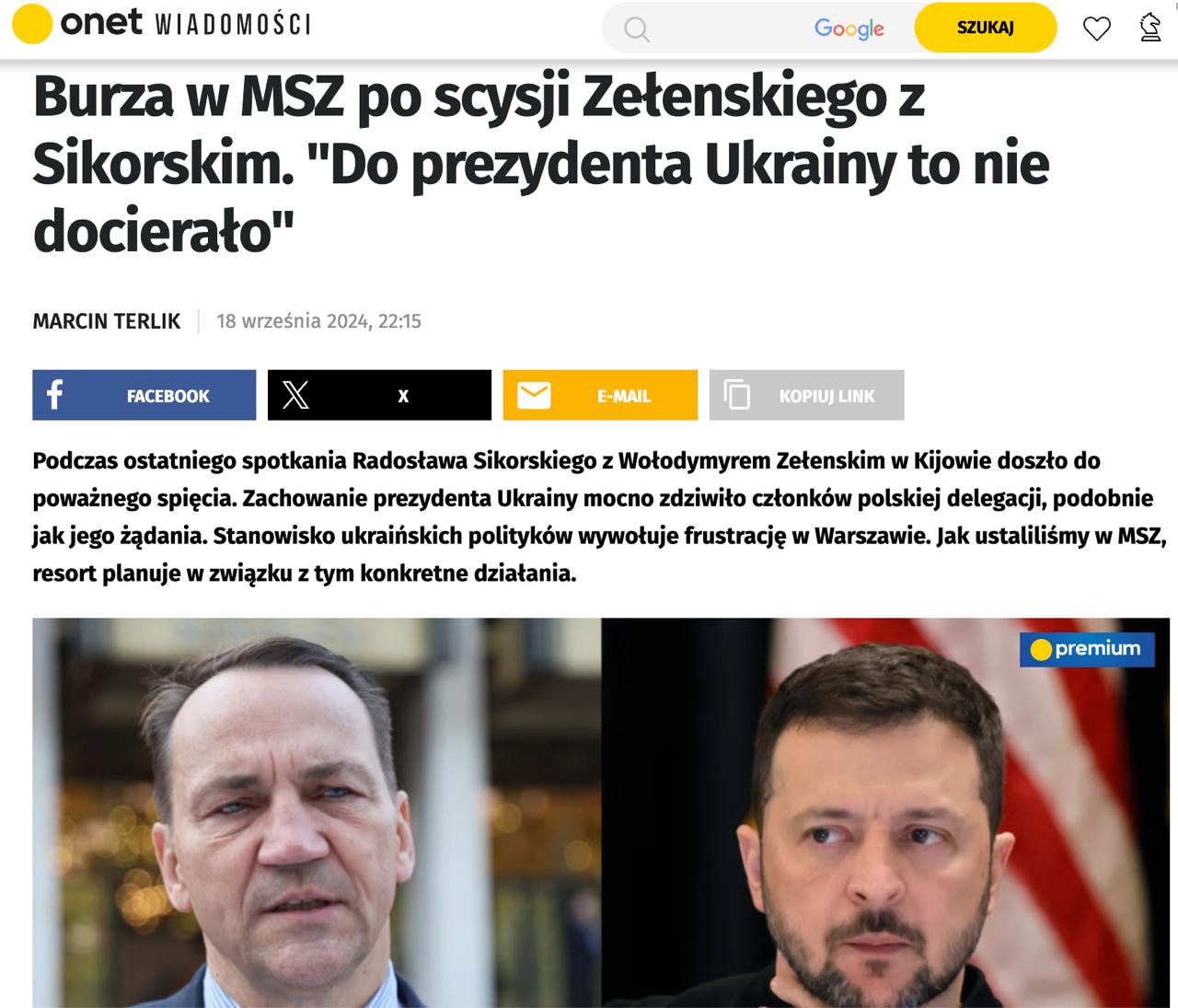 "Сікорський переконав Зеленського врегулювати історичні питання з Польщею зараз, тому що він заплатить за них меншу ціну, аніж під час переговорів про вступ. До Зеленського це не дійшло. Тепер українці приходитимуть до нас у різних справах. Вони вже це роблять", - каже джерело.