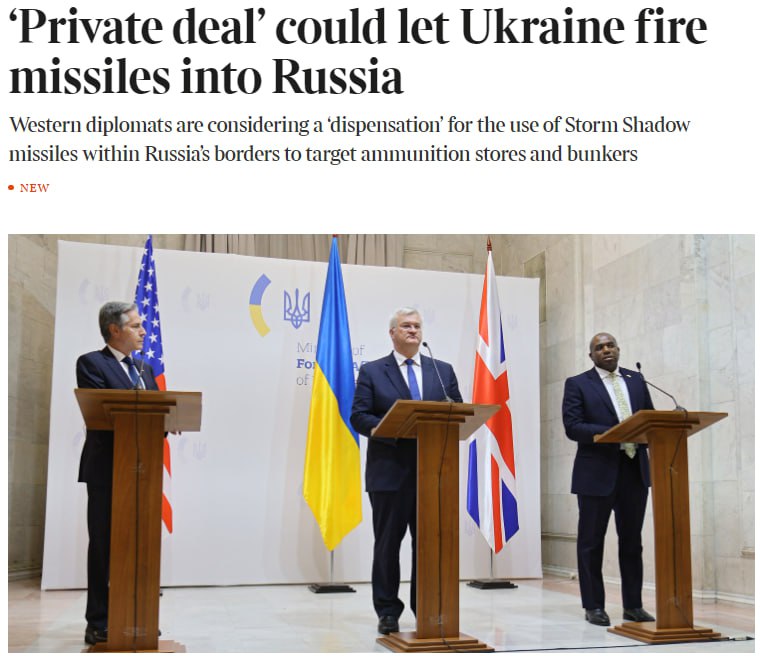 Джерела The Times також повідомляють, що Україна отримає дозвіл на удари вглиб території РФ з використанням французьких та британських ракет, але публічно до реального бойового застосування ракет про цей дозвіл не повідомлять.
