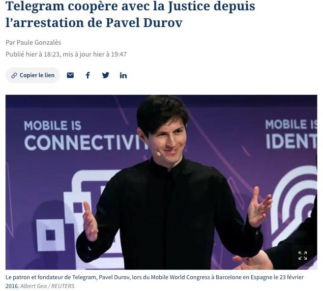 За даними видання, інші країни почали подавати запити до Telegram після того, як стало відомо про співпрацю Telegram із французькими відомствами.