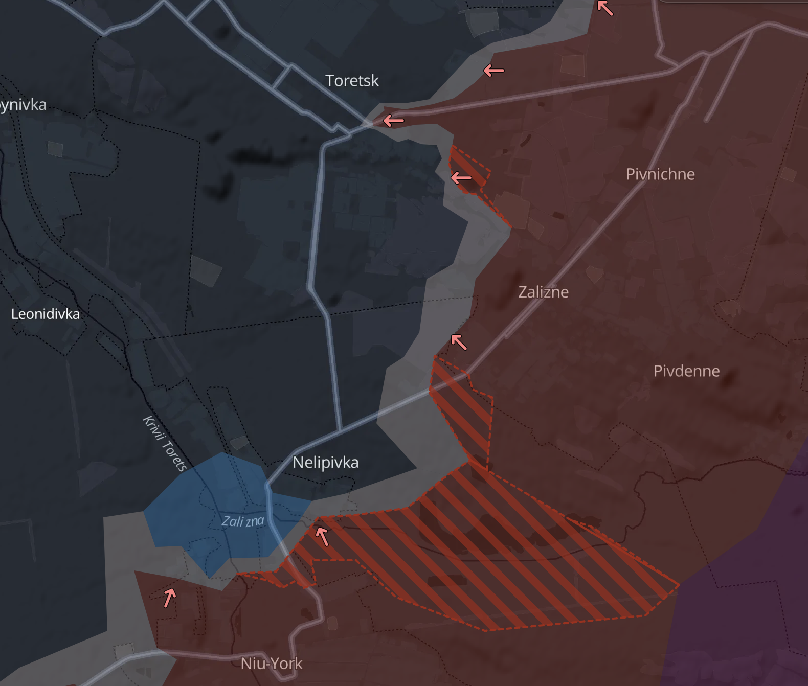 За даними Deep State, росіяни просунулися на схід від Нелепівки та під Торецьком.