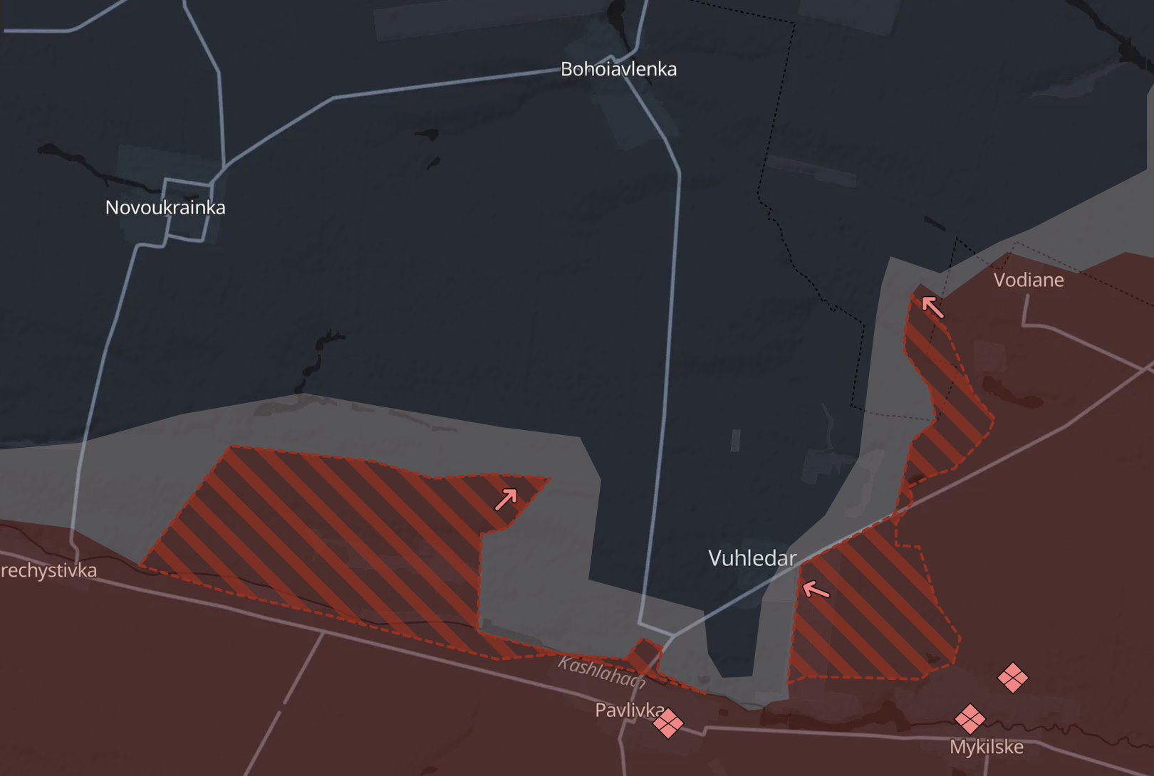 Російські війська прорвали українську лінію оборони річкою Кашлагач на захід від Вугледару. І бої йдуть уже менш ніж за кілометр від дороги на Богоявленку, якою постачається Вугледар. З її перерізанням для логістики залишаться тільки путівці, і фактично місто буде в оточенні.