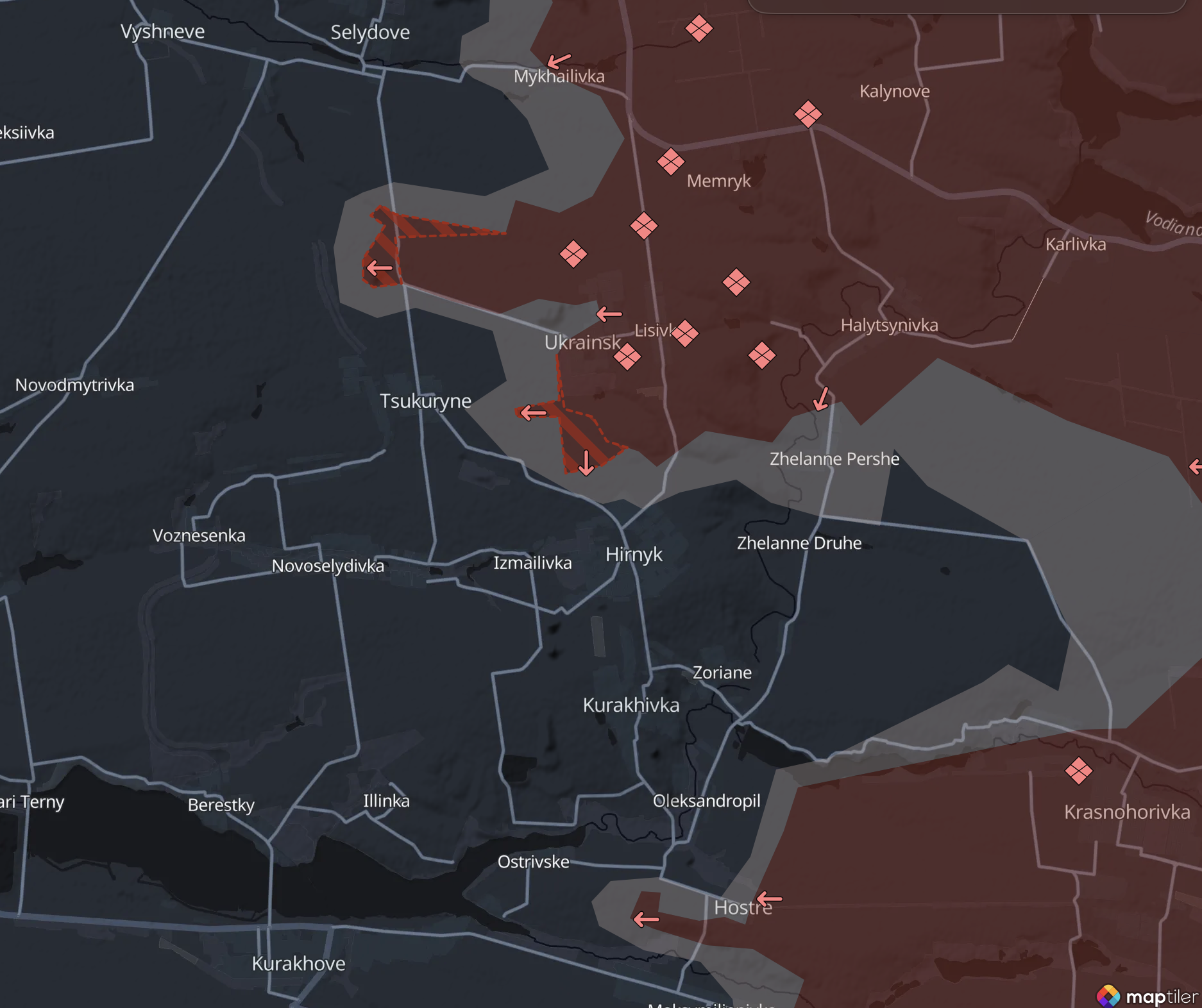 Зазначимо, що на захід від терикорну є залізниця, якою можна рухатися на північ або південь, обходячи з західного боку як Селідове на півночі, так і Цукуріно на півдні. Тобто, створюючи загрозу оточення цим укріпрайонам ЗСУ.