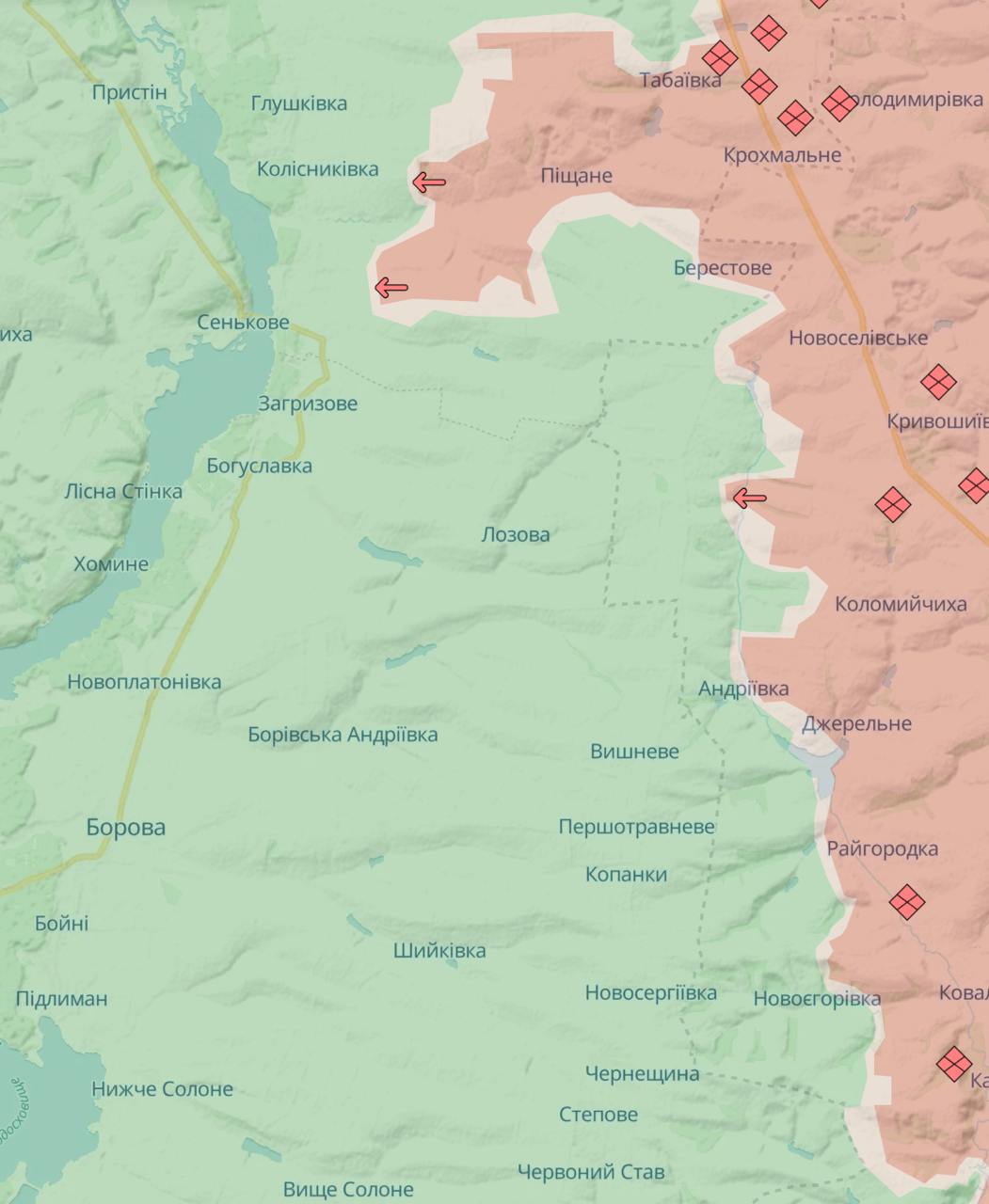 23.34 Росіяни повністю захопили Піщане на Куп'янському напрямку та просуваються у бік річки Оскол, заявив командир 1 штурмового батальйону 3 ОШБр Володимир Фокін.