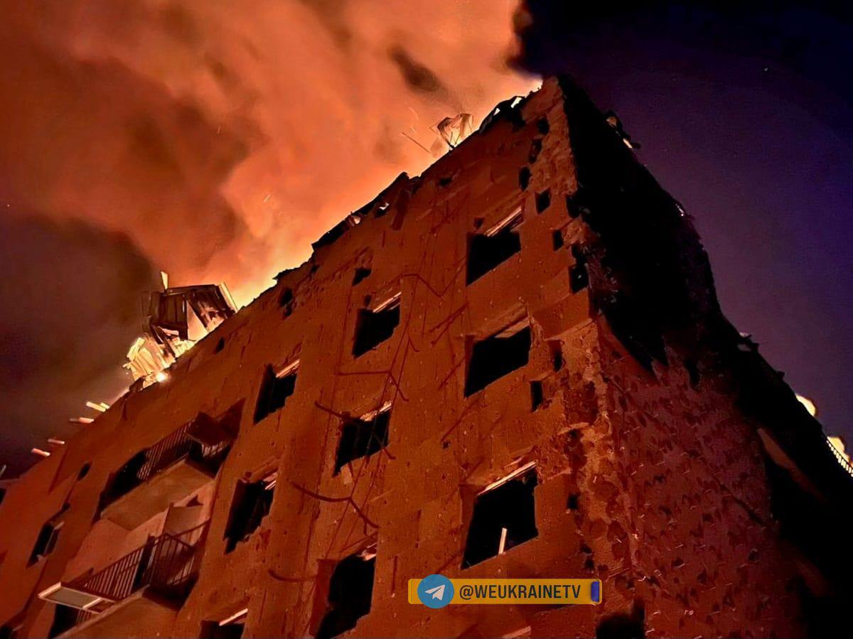 Постраждала багатоповерхівка у Харкові. Фото: Телеграм
