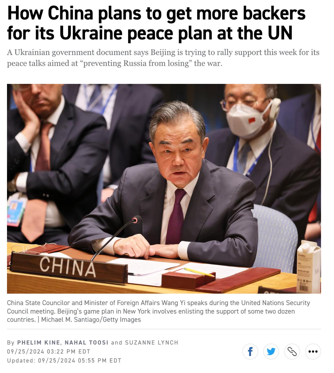 Українські дипломати розповсюдили в ООН зі своїми коментарями мирний план Китаю - Politico