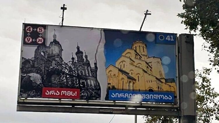 Правляча в Грузії партія "Грузинська мрія" у ході своєї передвиборчої рекламної кампанії порівняла знищені українські міста із мирними грузинськими. За місяць у країні відбудуться парламентські вибори.