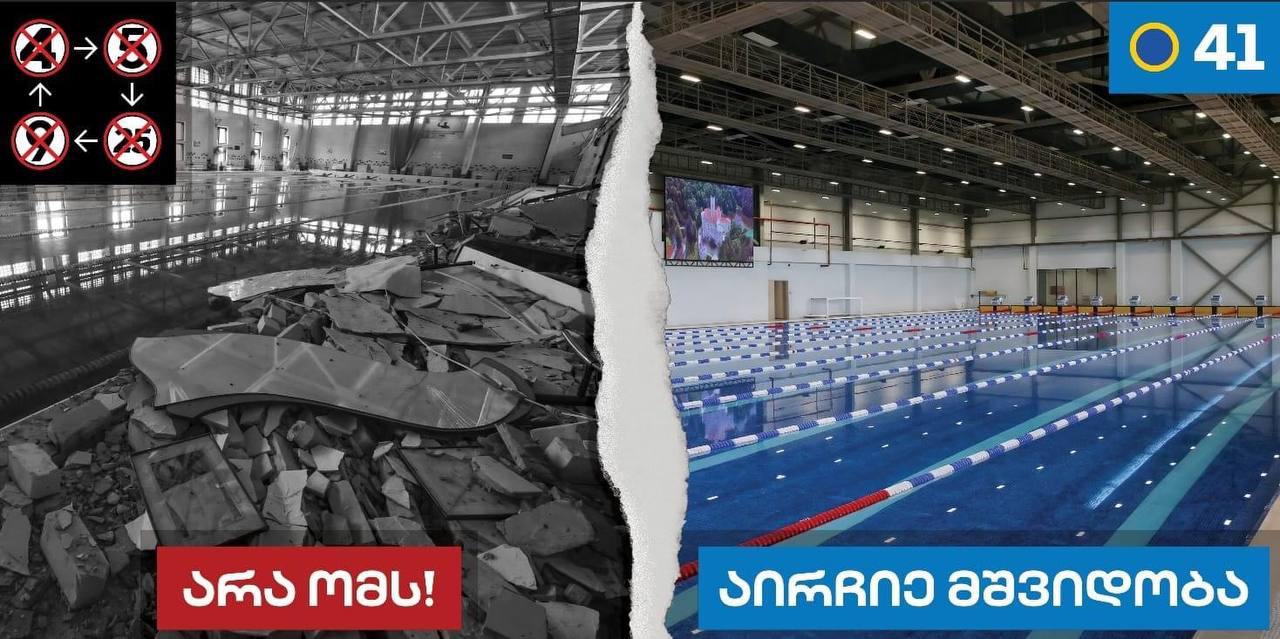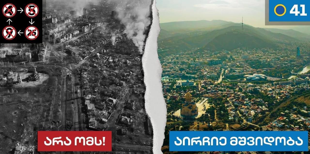 Кадри з підписом "Скажи ні війні! Вибери мир!" з'явилися на білбордах у Грузії та в соцмережах партії.