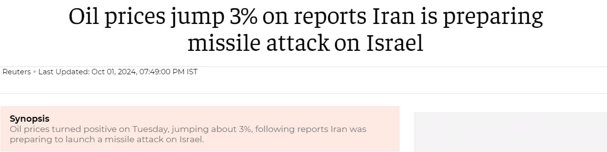 На тлі новин про можливу ракетну атаку Ірану ні Ізраїль нафту подорожчала на 3%.