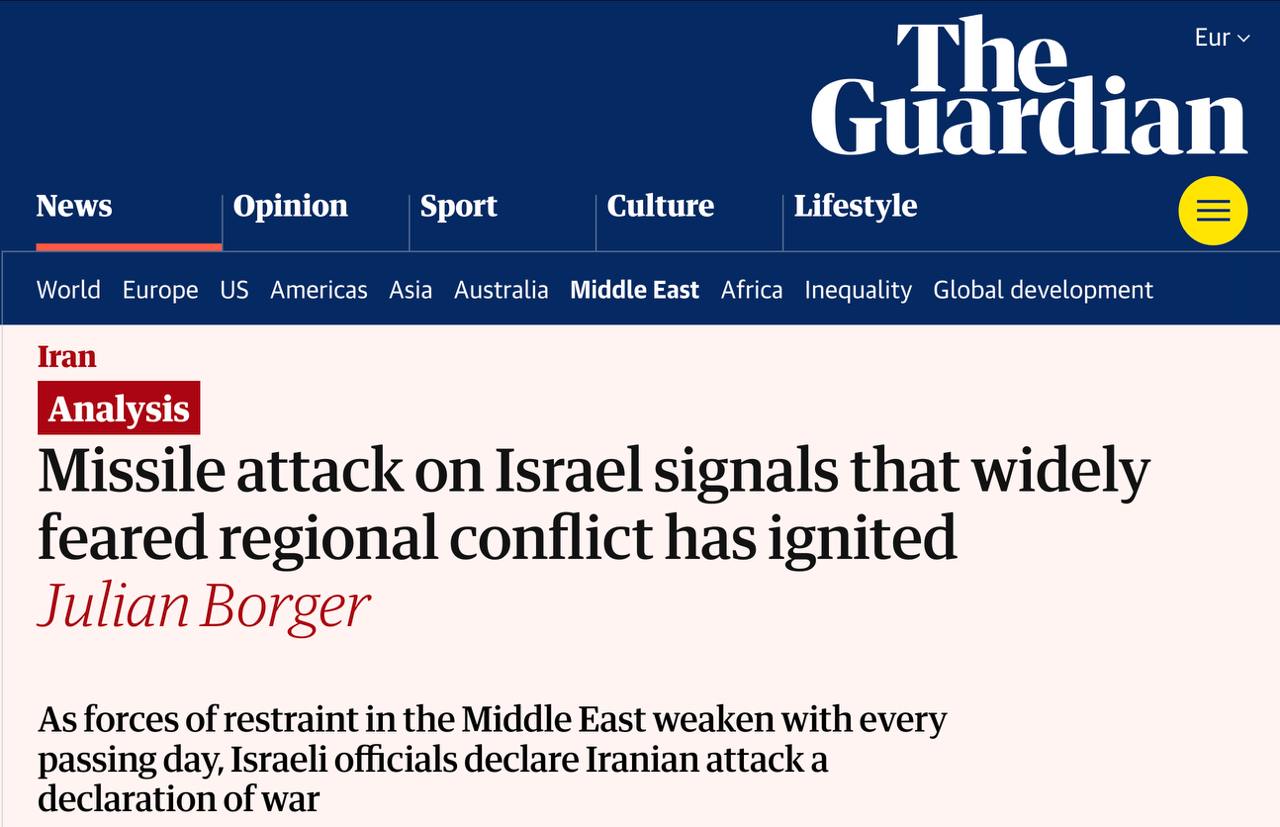 The New York Times вважає, що світ, можливо, наближається до "найнебезпечнішого моменту в історії сучасного Близького Сходу" - війни із застосуванням балістичних ракет між Іраном та Ізраїлем.