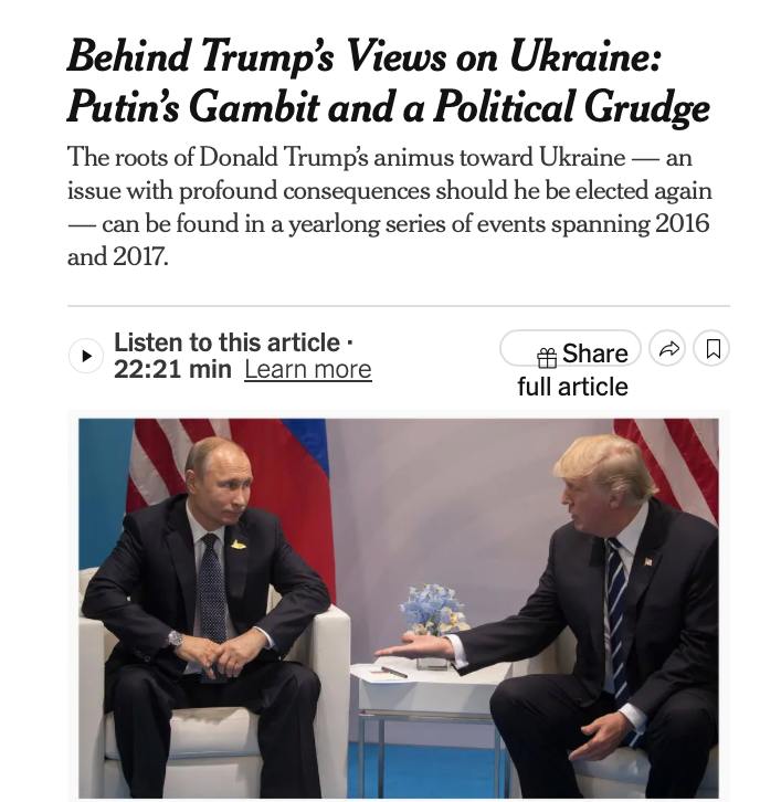 Під час першої зустрічі Путін налаштовував Трампа проти України - The New York Times